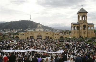 26日是格魯吉亞的獨(dú)立日。當(dāng)天的示威活動(dòng)主要在位于市區(qū)的派恰澤國(guó)家體育場(chǎng)舉行,但稍后有大量示威者在街道上游行,前往第比利斯最主要的教堂。