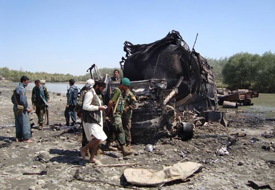 當地時間4日凌晨2點半,北約開始對塔利班劫持的油罐車發(fā)動進攻。地點在昆都茲西南方向約7公里處。阿富汗政府一名發(fā)言人4日稱空襲炸死了90人,其中大部分為塔利班武裝分子。但當時德國軍方表示有56名塔利班武裝分子喪生,沒有造成平民傷亡。