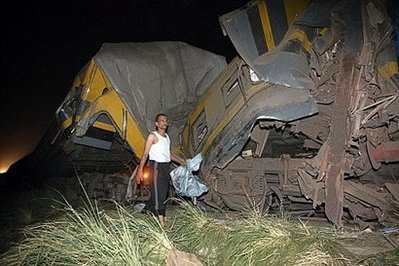 一列預定前往南方阿斯旺(Aswan)的火車,24日行駛到開羅附近40公里的吉薩(Giza)時,遭另一列火車從后方追撞,造成其中一節車廂翻覆。由于出事地點靠近運河,救難人員必須以樹干搭起克難的橋梁,將傷者從火車上救出。