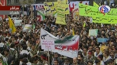 示威人群包圍了原美國大使館舊址,高呼“打倒美國!”、“以色列去死!”等口號。示威人群還把寫著“山姆大叔”標志的海報撕毀,并高喊“我們血管中流淌的鮮血,是我們奉獻給偉大領袖的禮物。”