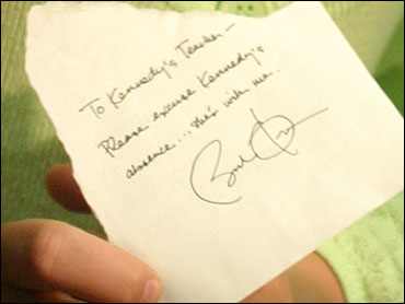 美國媒體爭相報道了這一事件,而10歲的小女孩也成為了明星。肯尼迪表示擔心老師將請假條“據(jù)為己有”,所以只給他一份復印件。
