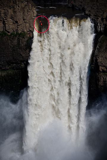 為了為此次降落做準備,來自蒙塔納的布蘭特此前曾經嘗試在俄勒岡的瀑布乘著皮劃艇從70-80英尺高的瀑布頂端降落。他最大的創舉是于2007年在加拿大西北領地的亞歷山大瀑布,乘皮劃艇從107英尺高的瀑布降落。