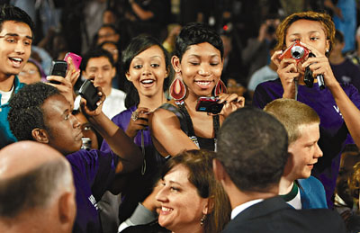 中新網9月10日電 美國總統(tǒng)奧巴馬8日在弗吉尼亞州阿靈頓威克菲爾德高中首次向全美中小學生發(fā)表新學年致辭,要求青少年們珍惜時光,用功學習,為自己和國家未來擔負起受教育的責任。他在答問環(huán)節(jié)又告誡大家使用社交網站Facebook時要小心,以免將來反受其害。雖然演說不含政治內容,但仍遭到反對人士的抗議,有人甚至指他在搞“個人崇拜”。