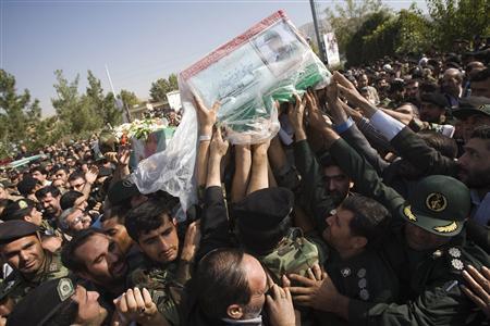 幾千名伊朗人,大部分為軍人,參加了在德黑蘭革命衛隊基地舉行的葬禮,人群高舉遇難將領與最高精神領袖哈梅內伊的巨幅照片。