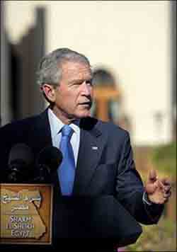 從布什的上述表態看,美國偏袒以色列的立場未變。這自然引起巴方不滿,特別是關于邊界劃分,布什的提議遇到了“紅燈”。巴民族權力機構主席阿巴斯13日重申,以臨時邊界建國的方案現在和將來都是“完全被拒絕”的。目前,巴以雖然啟動了核心問題對話,但雙方沖突仍呈惡化趨勢。15日,以軍在加沙大打出手,造成至少19名巴人死亡,另有45人受傷。哈馬斯除了誓言要“血債血償”外,還把以軍暴行歸咎于布什來訪,頗具諷刺意味。