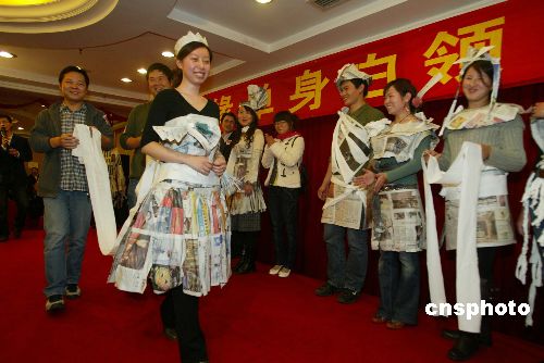 報紙剪裁做花衣 白領(lǐng)相親會成創(chuàng)意時裝秀(組圖)(2)