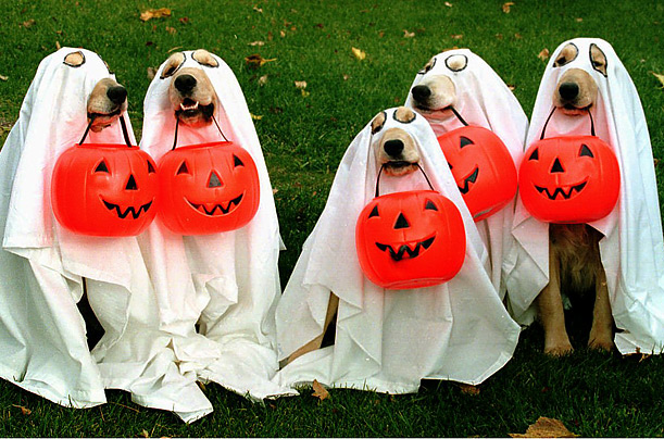 中新網10月31日電 每年10月31日是西方社會的萬圣節,也叫鬼節。人們對于它的重視程度幾乎與圣誕節不相上下。南瓜燈、面具、化裝晚會都隨之而來。孩子們會穿上形態各異的萬圣節服裝、拎著南瓜燈挨家挨戶去討糖。然而今年的萬圣節不僅僅是大人們和小孩們的節日了,連寵物也加入了慶祝的行列,為濃濃的節日氣氛更增添了些許趣意。