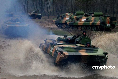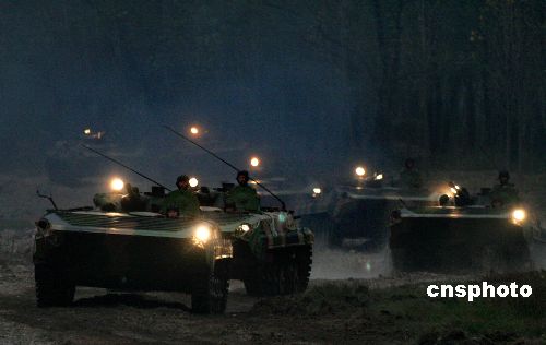 10月底,“鐵拳-2007”復雜電磁環境下機步師實兵檢驗性演習完成電磁對抗,進入實兵交戰階段。圖為裝甲部隊向演習地域集結。中新社發 曾憲平 攝