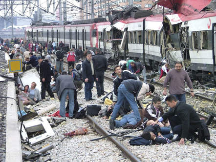 2004年3月11日西班牙首都馬德里近郊4列客運列車接連發生炸彈爆炸。共有191人死于那起該國有史以來最嚴重的恐怖襲擊事件,另外還有1856人受傷。