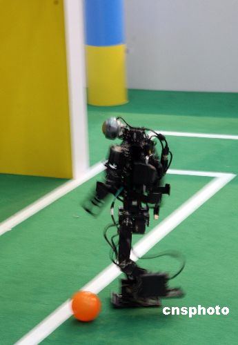 11月14日,海峽兩岸機器人足球賽在重慶大學(xué)鳴鑼開賽,來自國際科技大學(xué)、上海交通大學(xué)、清華大學(xué)、華南理工大學(xué)、重慶大學(xué)、成功大學(xué)、中正大學(xué)、淡江大學(xué)、長庚大學(xué)、高雄第一科技大學(xué)等海峽兩岸知名高校的機器人,將分為人形機器人和中型機器人兩種組別進行比賽。據(jù)悉,比賽是由重慶大學(xué)自動化學(xué)院、中國自動化學(xué)會機器人競賽委員會主辦。中新社發(fā) 郭晉嘉 攝