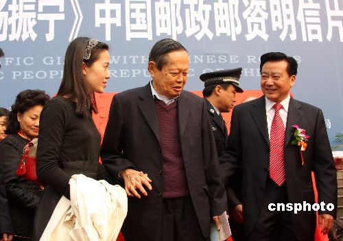 圖:楊氏夫婦攜手參加楊振寧明信片合肥首發儀式 (2)