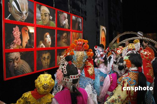 圖為學習京劇的孩子們身著戲服在攝影展上參觀。中新社發 盛佳鵬 攝