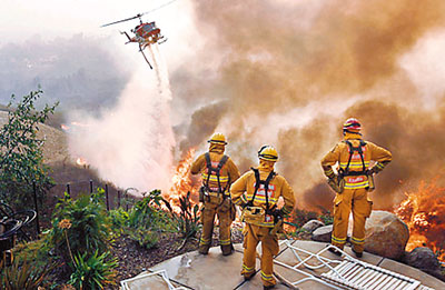 美國《時(shí)代》周刊近日選出本年度十大照片。首圖為加州山火令消防員亦束手無策。