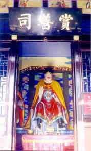 賞善司:本殿中間供奉的是善判官,兩邊站著的是功曹和書記。他們的主要職責(zé)是記錄陽(yáng)間的善事,為判官提供裁量的依據(jù)。