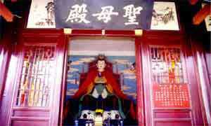 媽祖殿:媽祖是一位海神,保佑船家以及海上的平安.媽祖在我國南方沿海及東南亞、日本、朝鮮一帶極受崇拜。那么為什么要在綿山修媽祖殿呢?明清時期著名皇商介休范家,由于常有海上貿(mào)易,是舉世聞名的船幫。有一次,他們又有出海業(yè)務(wù),船隊在大海中飄泊已有半月。此時忽然狂風驟起,烏云翻滾,四周一片漆黑,并發(fā)生了海嘯,眼看就要人仰船翻。船上的人驚慌失措,心中默念海神,希望得到救助。就在此危難時刻,突然從海中緩緩升起一位站在白蓮臺上的朱衣女子。她往海中扔了顆定風珠,風漸漸小了,天也亮了,一切又平靜下來,好象什么也沒發(fā)生過。當人們回過神來,再看這位朱衣女子時,已經(jīng)騰空而去。人們頓時明白這是海神媽祖娘娘顯靈救了他們。此次出海他們滿載而歸。回到介休后,為了感謝媽祖娘娘的救命之恩,在綿山建廟供奉媽祖。媽祖為閩南方言,又稱“天上圣母”,“天后娘娘”。她能預(yù)言禍福,善于治病救人。農(nóng)歷三月初三和九月九日是媽祖的生日和升天日。媽祖左側(cè)為吳天醫(yī),醫(yī)術(shù)高超,救人無數(shù);右側(cè)為順天圣母,能除蛇妖,催生助產(chǎn),是保護婦女、兒童之神。