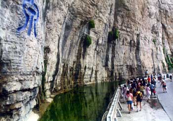 現在崖壁依稀可見五龍圣母的影像,正垂目下望,是她送來了甘洌的泉水,滋潤了萬物,降福于人間。在此飲圣水,百天可軟化血管,婦女飲此水無奶可催奶,兒童可長身高。千百年來在此飲圣水者絡繹不絕。