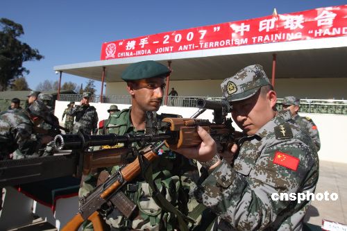 “攜手-二00七”中印陸軍聯合反恐訓練開訓儀式21日上午在中國昆明舉行。中新社發 張雷 攝