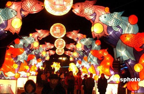 2008沈陽迎春燈會在沈陽世博園舉行,本屆燈會展出北京奧運、鼠年吉祥、世界遺產、京劇臉譜、童話王國、沈陽地標、傳統(tǒng)花燈、書法藝術八大主題系列,展線長3400米,花燈數量超過3000盞,花燈品類達到80多個,其中以“北京奧運”為主題的組燈受到市民的“追捧”。中新社發(fā) 羅瀾 攝