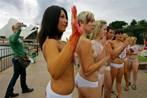 美女裸體抗議斗牛比賽殘忍。