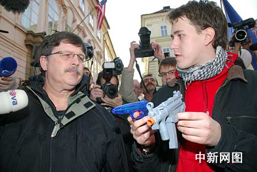 中新網布拉格3月16日電 在昨天下午布拉格舉行的反對美國在捷克建立中歐導彈防御系統的雷達基地的示威游行中,捷克示威民眾要求美國駐捷克大使館向美國政府轉交他們尋獲的所謂“伊朗大規模殺傷性武器”的證據,而這些證據實際上只是一些塑料兒童玩具。示威者用一種特殊方式嘲笑和譏諷美國政府尋找戰爭借口如同兒戲,入侵伊拉克還想打伊朗。