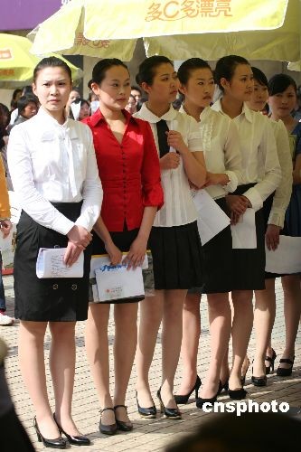 3月22日,2008中國新空姐招募大會在鄭州二七廣場舉行揭幕儀式。當日,來自全國各地的兩千多位美女云集鄭州報名應聘。據介紹,這是有史以來最大規模的空姐招募,此次招募大會計劃在全國招募500名空姐,其中鄭州地區招募55名空姐。中新社發 陳代述 攝