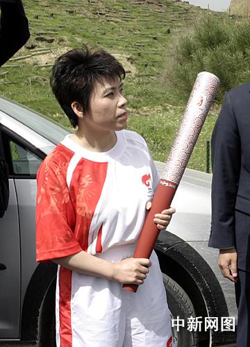 希臘當?shù)貢r間3月24日,北京二00八年奧運會圣火采集儀式在古奧林匹亞競技場舉行,隨后火炬希臘傳遞開始。第三棒火炬手、中國乒乓球奧運冠軍鄧亞萍在交接處等待圣火到來。 中新社記者 王歡
