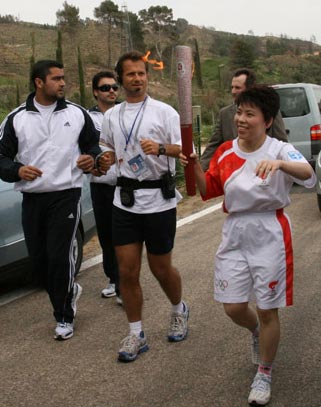 組圖:北京奧運(yùn)火炬手傳遞“夢想”(4)