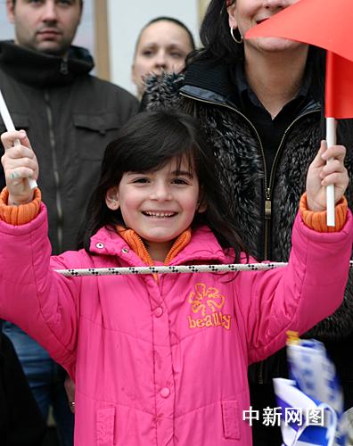 3月25日,北京2008年奧運(yùn)圣火希臘傳遞第二天,慶典儀式在終點(diǎn)約阿尼納舉行。市民高舉中國(guó)和希臘國(guó)旗歡迎北京奧運(yùn)圣火到來(lái)。中新社記者 王歡