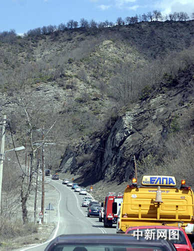 3月26日,北京奧運會圣火希臘境內傳遞第三日,火炬車隊在山間公路上行駛。中新社記者 王歡