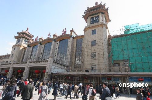 圖:北京站迎奧運更換車站頂部琉璃瓦(2)