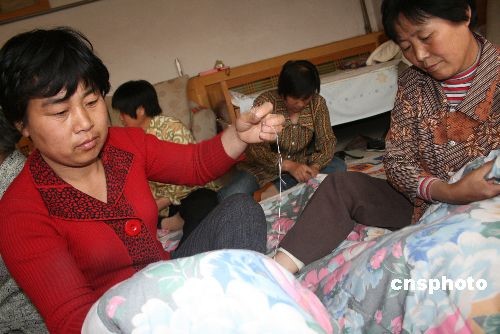 組圖:山東博興農婦趕制被褥捐災區(2)