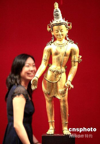 圖為鎏金銅佛像,價(jià)值六百萬美金。中新社發(fā) 張勤 攝