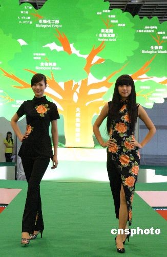 2008年10月16日,為期三天的第八屆中國國際糧油產(chǎn)品及設(shè)備技術(shù)展覽會(huì)在南京國展中心舉行。交易會(huì)期間舉行的用玉米蛋白纖維制成的精美時(shí)裝表演,給觀眾帶來視覺沖擊的同時(shí)也從新的角度展現(xiàn)了糧食深加工的魅力。中新社發(fā) 阿董 攝