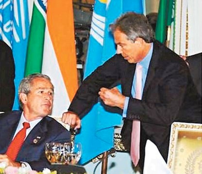 出席八國峰會時,與英國前首相布萊爾邊吃邊談,不知道桌上的話筒沒關,布什提到真主黨時候,說了粗話“shit(狗屎)”