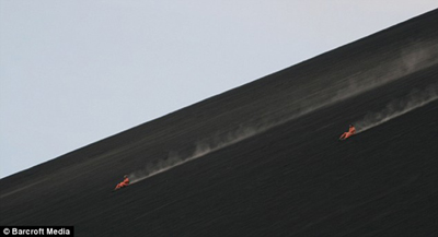 中新網(wǎng)5月9日電 據(jù)英國(guó)媒體報(bào)道,尼加拉瓜境內(nèi)的Cerro Negro火山現(xiàn)在成了極限運(yùn)動(dòng)愛好者們的一個(gè)新去處。他們?cè)谶@座活火山上,踩上特制的滑板,一滑而下,體驗(yàn)超刺激的感覺。該地火山滑板運(yùn)動(dòng)已經(jīng)吸引了數(shù)千名游客。