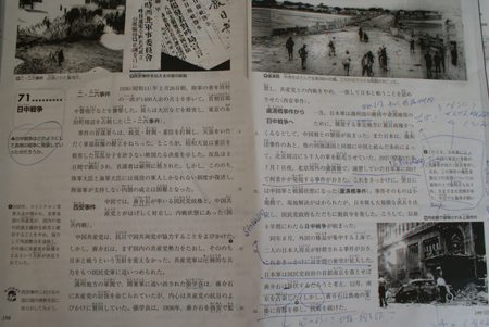 除了用詞之外,對(duì)輔助照片的運(yùn)用也值得注意。介紹南京大屠殺史,通常使用日軍進(jìn)入南京的照片。而沒(méi)有一本書中采用了南京市民被日軍殘害的照片。而日本學(xué)生們?cè)谶@樣的教科書中,根本找不到日軍殘暴行為的具體痕跡。