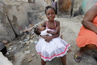在太子港一所孤兒院,一百二十五位小朋友中有五十人不幸喪生。另一所孤兒院現(xiàn)在成了臨時庇護中心,二十個孩子雖然有地方暫時棲身,但是物資極度缺乏。現(xiàn)在海地至少二十萬名孤兒急需外界援助,在西方國家有許多想要領養(yǎng)的民眾卻是苦苦等候。
