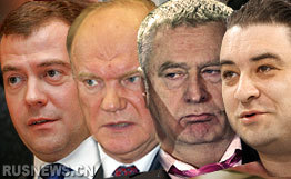 共有四位候選人競爭繼葉利欽和普京之后的俄羅斯總統職位。他們是幾度競選過總統的俄羅斯共產黨主席根納季·久加諾夫、自民黨主席符拉基米爾·日里諾夫斯基,還有初次競選總統的俄羅斯民主黨主席波格丹諾夫和第一副總理梅德韋杰夫。