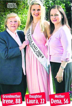 現(xiàn)年22歲的英國(guó)女孩勞拉·科爾曼在“英國(guó)小姐”選美大賽中擊敗其他49名決賽佳麗,一舉奪得了“英國(guó)小姐”的桂冠。然而鮮為人知的是,勞拉其實(shí)來自一個(gè)英國(guó)“選美世家”,她的外婆愛琳、母親迪娜都曾經(jīng)當(dāng)選過英國(guó)各個(gè)選美大賽中的“選美皇后”!