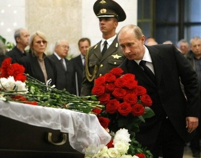 普京向索爾仁尼琴遺體告別 獻上一束紅玫瑰(圖)