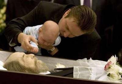 普京在作家棺材旁邊敬獻一束紅玫瑰,走到索爾仁尼琴遺孀納塔利婭身旁,向她和作家的兒子斯捷潘和葉爾莫萊表示個人慰問。