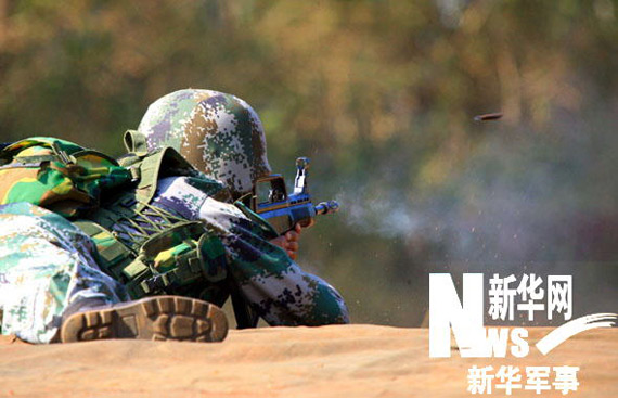 中國士兵正在進行百米胸環靶射擊 [新華社記者 李剛 攝]
