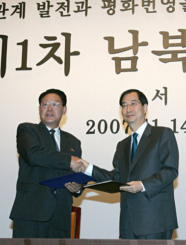 對于社會文化領域的交流相關問題,朝韓決定成立由雙方部長級人士擔任委員長的“朝韓社會文化合作促進委員會”,并于明年上半年舉行第一次會議,就歷史遺址、挖掘并保存史料、合組2008年北京奧運會啦啦隊等諸多事宜開展討論。