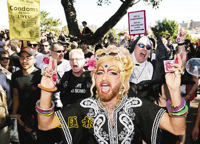中新網(wǎng)7月20日電 澳大利亞悉尼的世界青年日活動(dòng)19日繼續(xù)進(jìn)行,而示威者為表達(dá)對天主教教宗本篤十六世反同性戀及反避孕立場的不滿,便乘朝圣游行隊(duì)伍中的年輕教徒通過市內(nèi)的同性戀區(qū)時(shí),向他們投擲安全套。