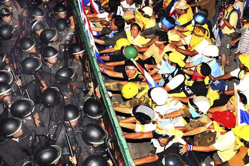 本月二十六日,民盟的支持者在曼谷舉行大規(guī)模示威,沖擊政府部門(mén)并占領(lǐng)總理府。盡管泰國(guó)民事法院發(fā)出命令,要求示威者撤出總理府,但領(lǐng)導(dǎo)示威的民盟拒絕執(zhí)行法院命令,繼續(xù)在總理府內(nèi)舉行示威。