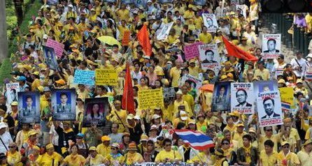 泰國警察7日在曼谷國會大院外驅(qū)散民盟支持者時,雙方發(fā)生沖突,造成2人死亡,400多人受傷。民盟認為政府應(yīng)對這一事件負責(zé)。