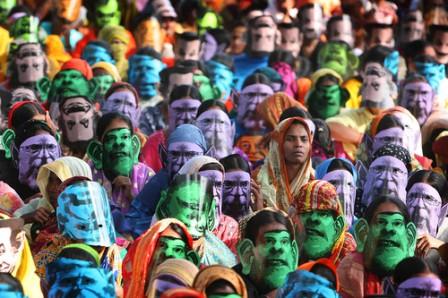 圖文:孟加拉環保組織游行 頭戴G8領導人面具
