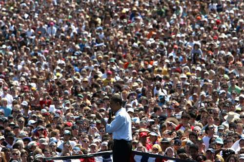 美國民主黨總統競選人奧巴馬十八日在俄勒岡州對民眾演講。