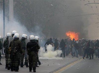 希臘警察射殺少年事件引發(fā)的騷亂在時斷時續(xù)了一段時間后,20號再次出現(xiàn)惡化的局面,當(dāng)天數(shù)百名示威者在雅典市中心和警方爆發(fā)沖突,雅典街頭火光沖天。