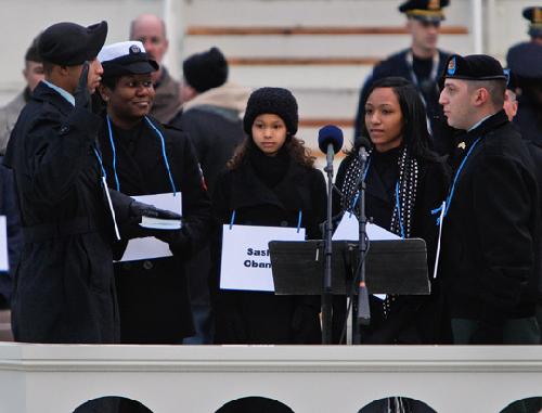 隨著軍樂隊高奏總統官方進行曲《向統帥致敬》,這場大規模的彩排在黎明之前開始。據悉,交接儀式將在國會大樓西側的露天平臺上進行。所有的重要人物,包括奧巴馬一家和布什,都有替身扮演。其中,扮演奧巴馬夫婦的是兩名黑人士兵,扮演他們“女兒”的則是兩個黑人小姑娘。除參加交接儀式彩排外,他們還進行了車隊走位的彩排。